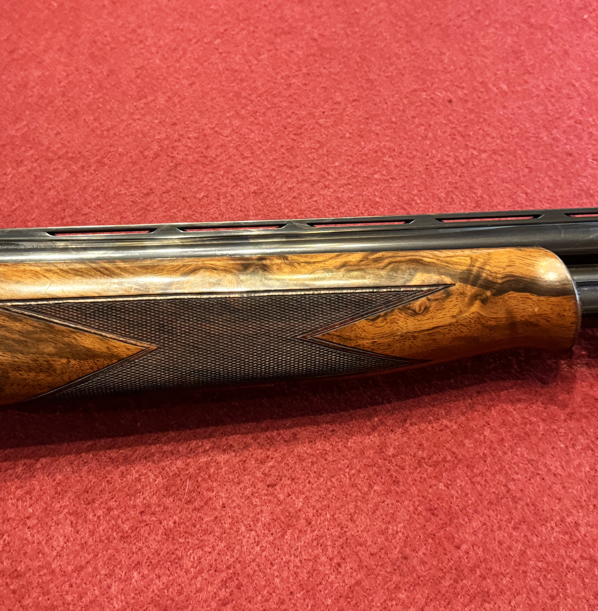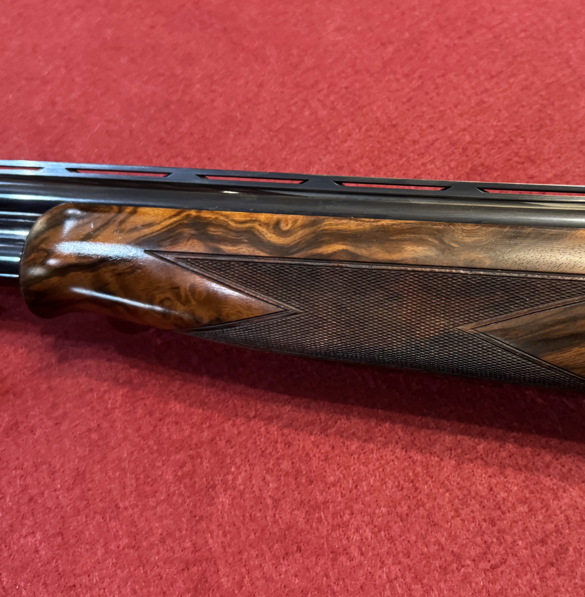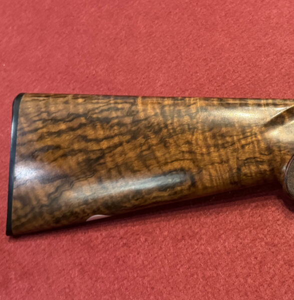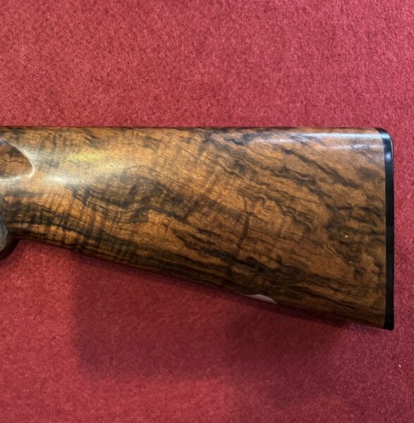 Browning Heritage Field used 12 bore over and under shotgun for sale in excellent condition. 30 inch barrels, multi-choke, comes in original makers case. Game-scene engraved side plates accompanied with a highly figured walnut stock containing attractive wood grain detailing throughout.