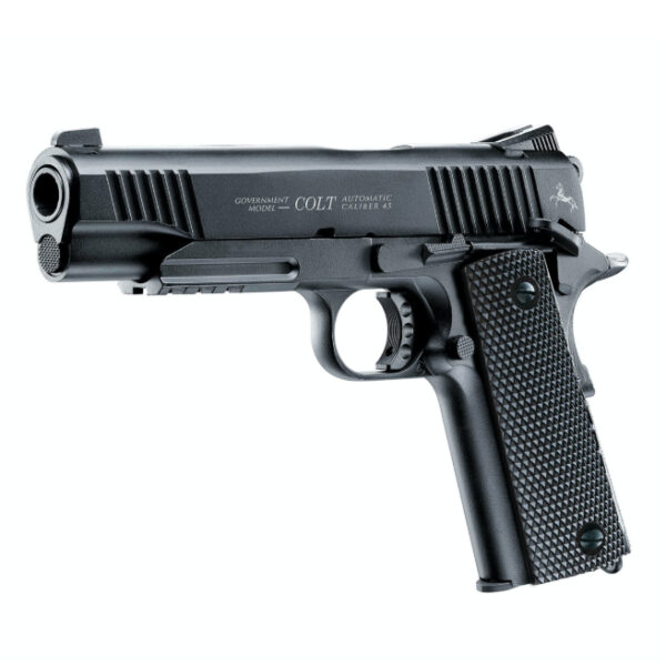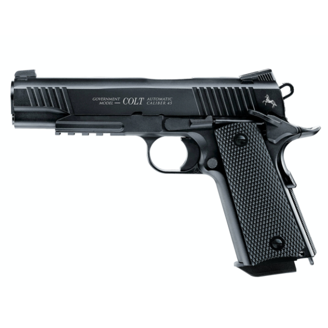 Licensed replica of the latest M1911 Close Quarter Battle Pistol for the US Marines. The Colt M45 CQBP by Umarex features, heavy all-metal construction with realistic blowback effect. It require 12 gram Co2 capsules and fires 4.5 mm Steel BBs.
