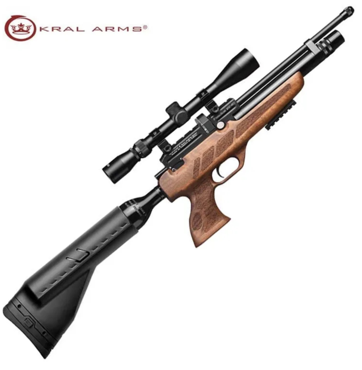 Kral Arms NP-02 Walnut new PCP airgun .177 or .22 calibre! Great valve pre-charged air rifle with a large shot count. Side-lever cocking action with multi-shot magazine.