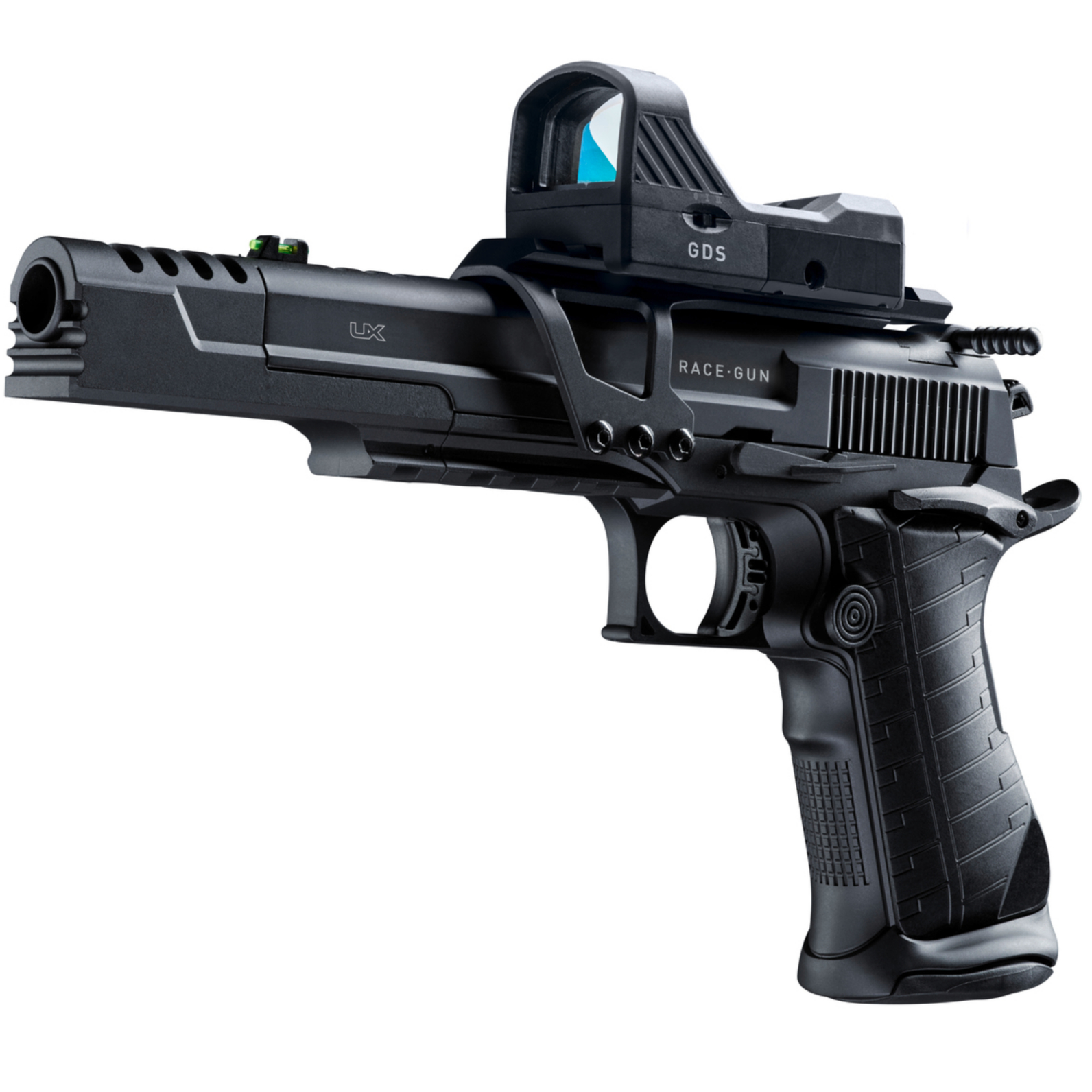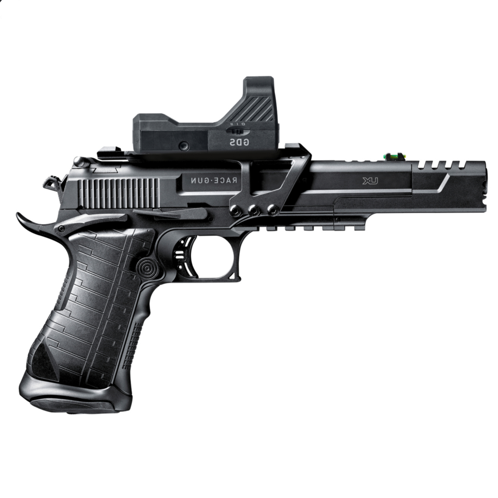 The Racegun comes with the Umarex GDS Point Sight included. Special features of the Umarex Racegun include a compensator, longer functional elements and a jet funnel with its blowback effect and all-metal construction.