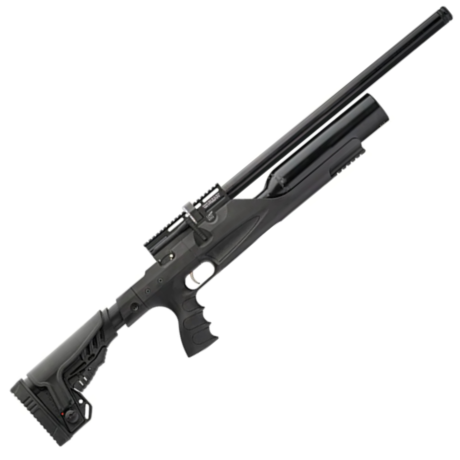 Webley En4cer multi shot pre-charged air rifle. Tactical stock with adjustable length. Large shot count, side-lever cocking system. Ideal for small vermin pest control. Equally suitable for target shooting and plinking at knock down targets.