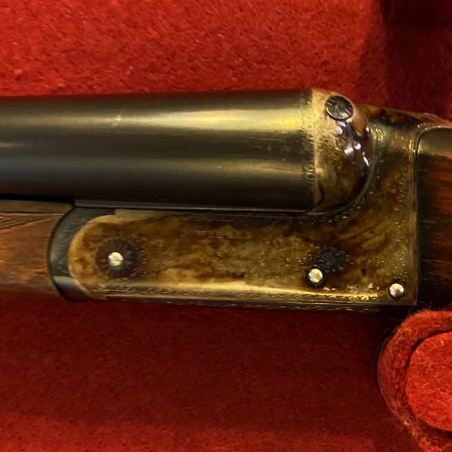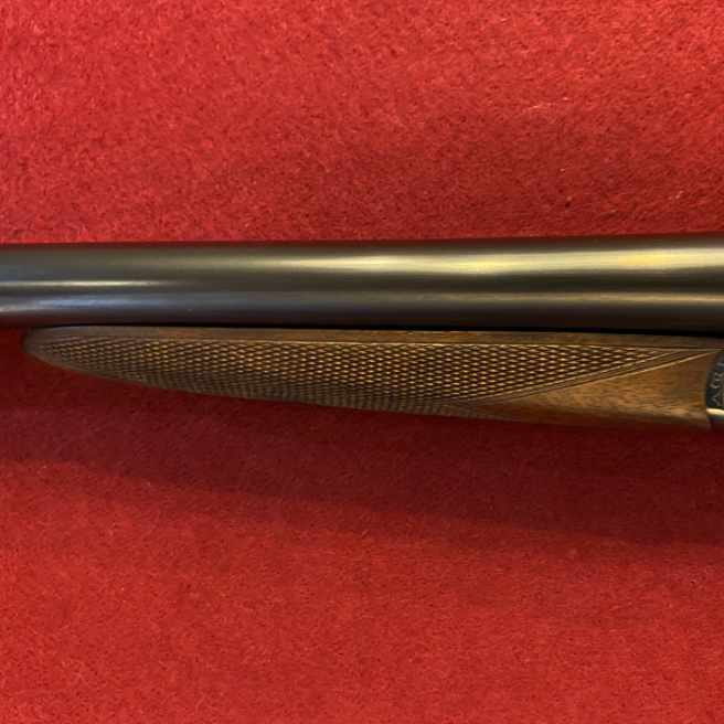 J.Wilkes side by side English 12 bore shotgun for sale. Non-ejector, double trigger, nitro proofed. No part exchange. Superb condition, lovely walnut stock with attractive wood grain detailing.